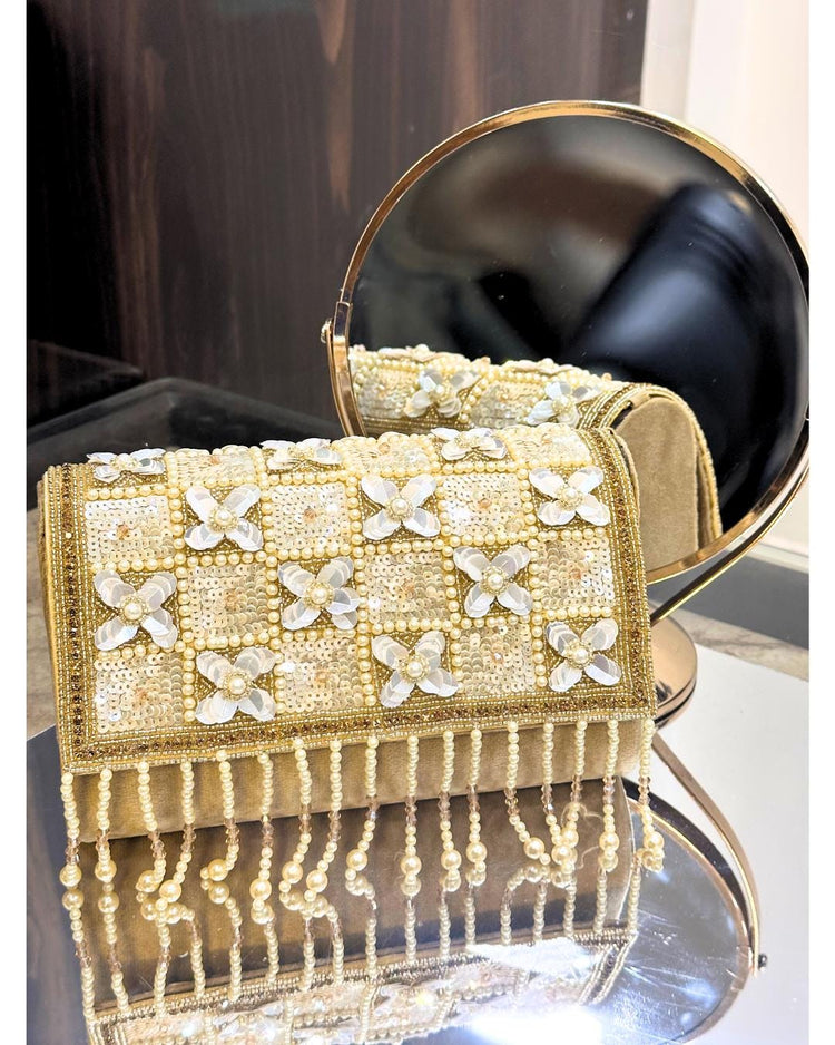 Elevate your evening look with our Luxury Handcrafted Beaded Clutch Purse. Handmade with intricate pearl and sequin floral embellishments, this elegant bag is perfect for weddings and parties. The BLACKLUXE CRAFTS brand represents quality craftsmanship and impeccable style. Make a statement with this one-of-a-kind piece